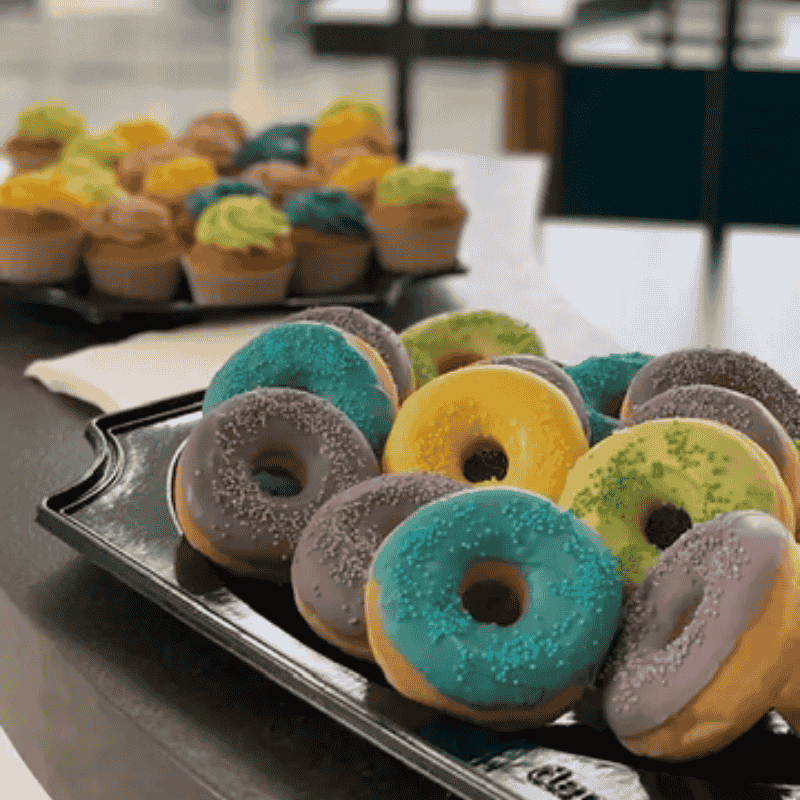 Onze klanten gebruiken donuts met logo voor allerlei momenten. Ze trekken de aandacht, brengen kleur in elk feest en zorgen voor een blijvende glimlach. Wat de reden ook is, wij zorgen dat de donuts passen bij jouw moment.